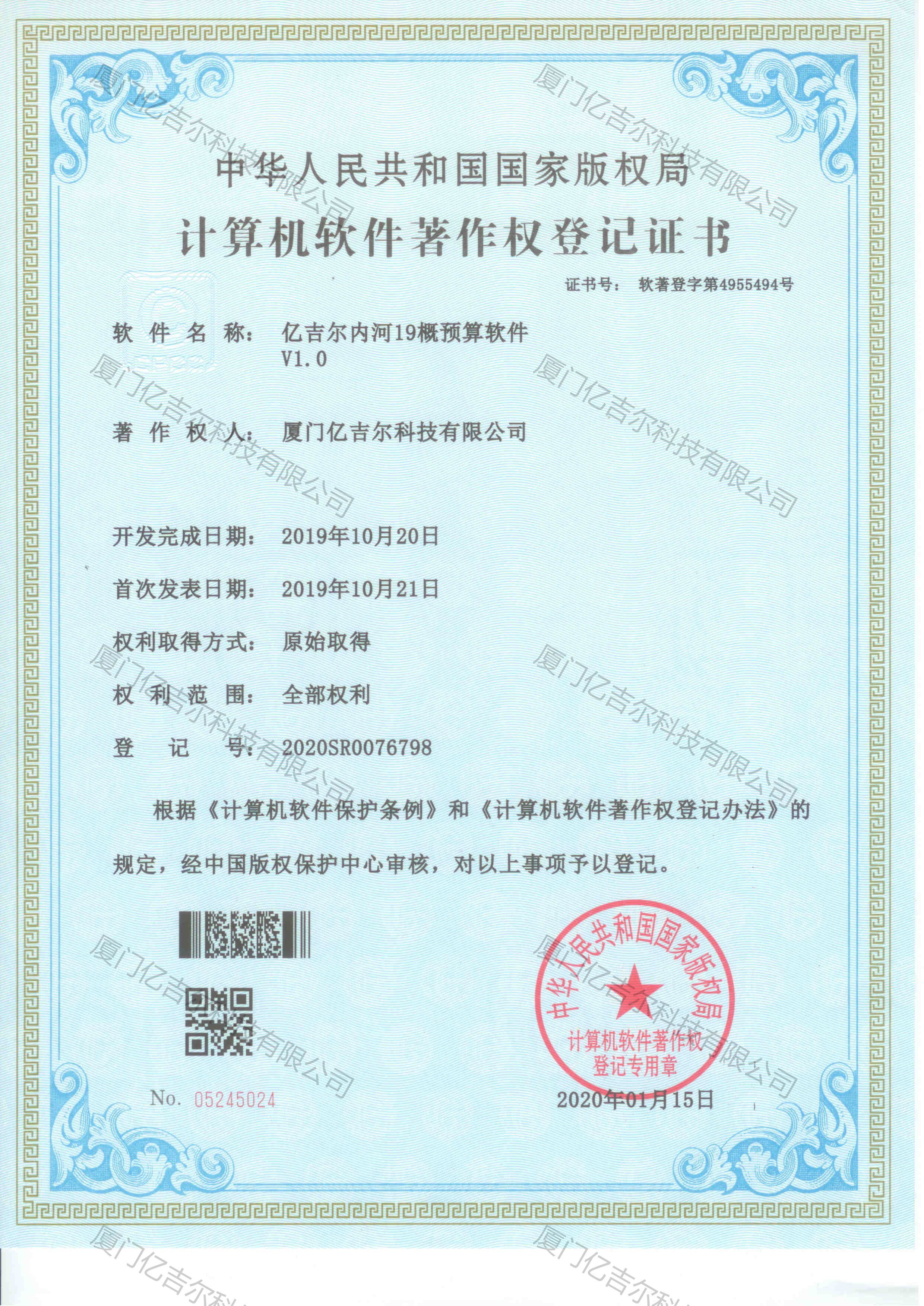 億吉爾內(nèi)河19概預(yù)算軟件著作權(quán)登記證書 發(fā)布日期:2020年01月15日 瀏覽次數(shù):3317 關(guān)鍵字: 公司 1/1億吉爾內(nèi)河19概預(yù)算軟件著作權(quán)登記證書